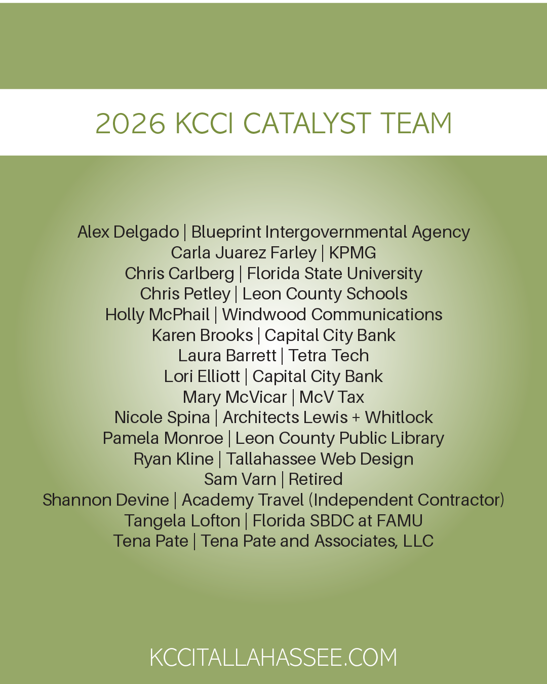 KCCI’s 2026 Community Catalysts are a team of passionate, well-connected and driven volunteers who will lead a bold placemaking initiative to add vibrancy and public art in Tallahassee, especially in the neighborhoods where the Crosswalk to Classrooms were removed, even though quantifiable data showed that they improved safety by slowing down vehicular speeds and improving traffic compliance. Together, the team will work to reclaim the spirit of neighborhoods surrounding schools through creativity and collaboration using placemaking tools.