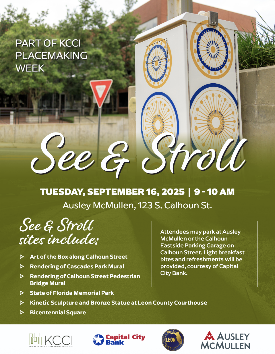 Working with community partners, KCCI organized an engaging two weeks of hands-on community building and improvement events, tours, and networking events, all designed to enhance sense of place in Tallahassee. The events were FREE to the public.